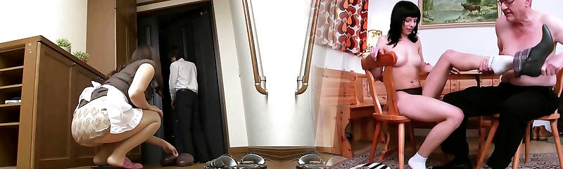 JAPANESE BABE BENDS OVER AS SHE GETS Pounded BY TWO Rock-hard