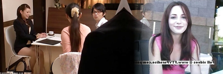 Japanese MMF threesome with a brunette chick & her friends