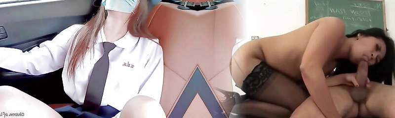 Young lady in school uniform masturbates in car