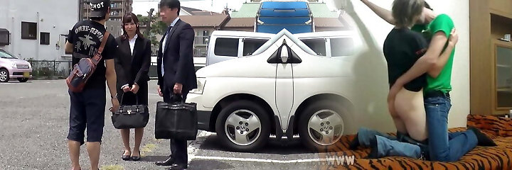 Grubby blonde bitch finds a hot connection with her Japanese spouse's boss.