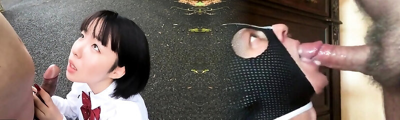 Asian school blowjob with slutty redhead taking messy facial