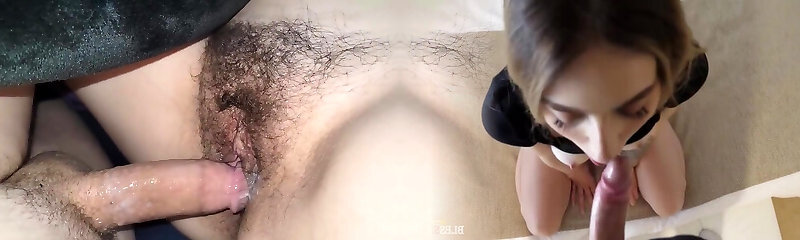 I fucked Alena's tight vagina without taking off my panties and finished inside