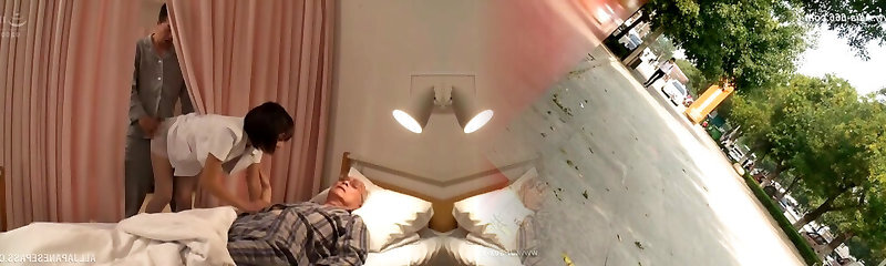 Japanese nurse Nono Mizusawa gives a fellatio and rides on the bed