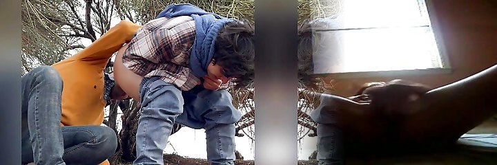 Outdoor thirsty couple guzzle piss