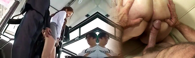 Asian brunette is often traveling by bus, because someone always gets to plow her brains out