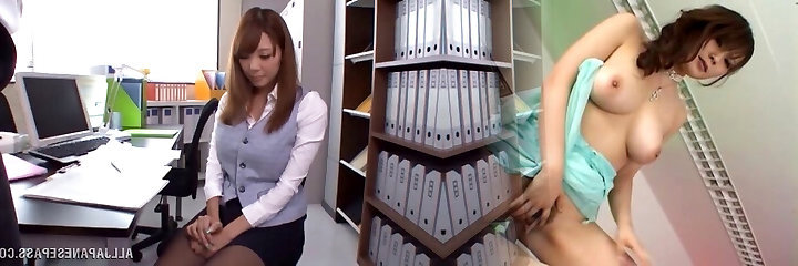 Japanese office girl gives a dt and a footjob