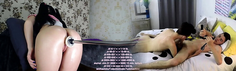 Asian woman squirts on sex machine with wand