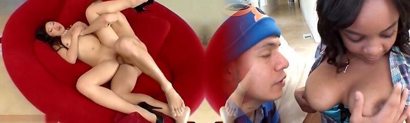 Brunette Chinese teenage Han Yan is fucked hard and sucking beefstick on couch.